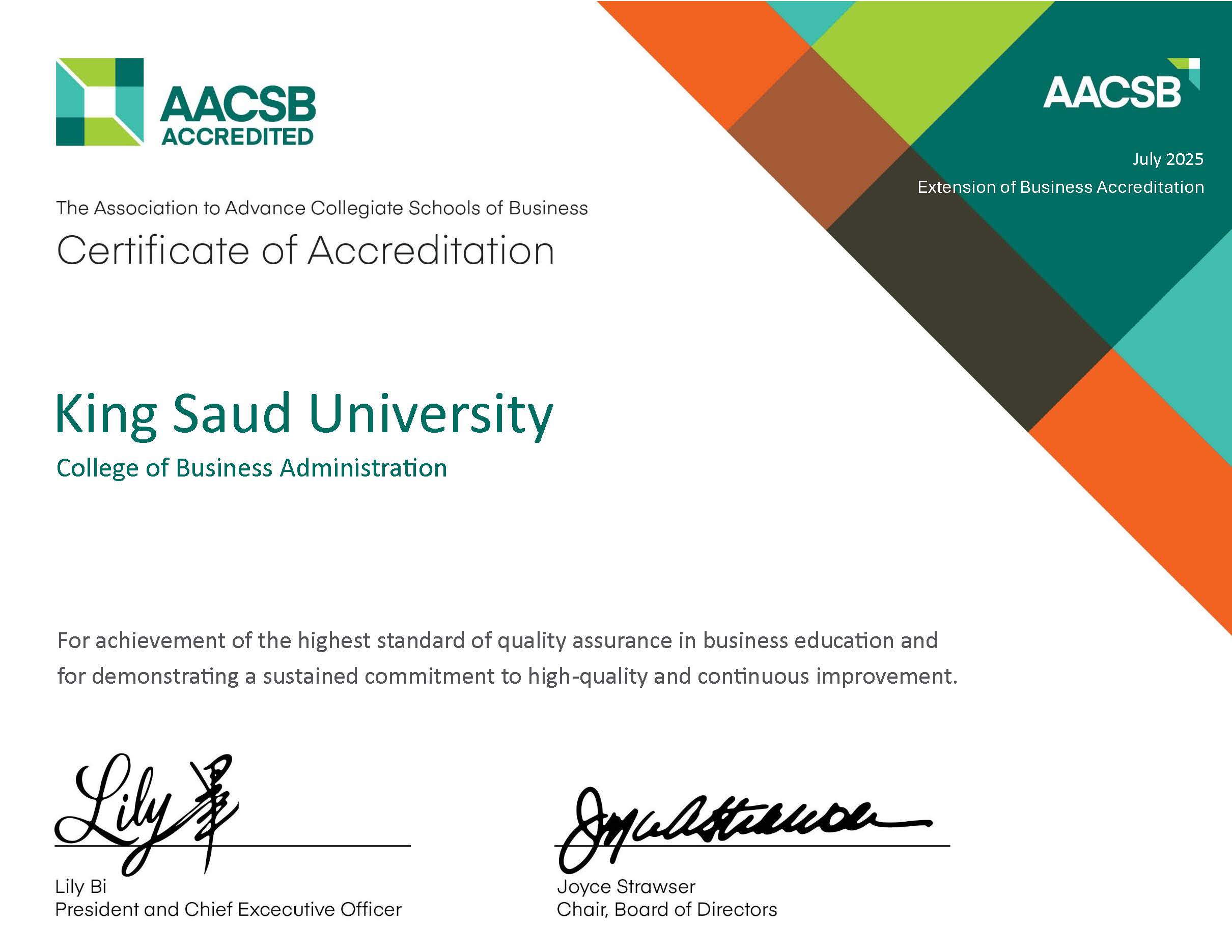 شهادة اعتماد دولي لجميع برامج كلية إدارة الأعمال | |